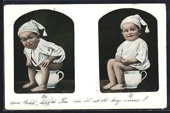 AK Au - Ei, Kleiner Kerl auf Nachttopf