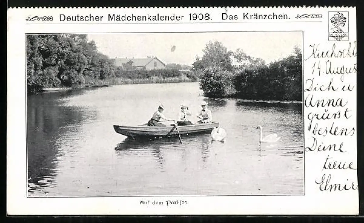 AK Auf dem Parksee, Deutscher Mädchenkalender 1908