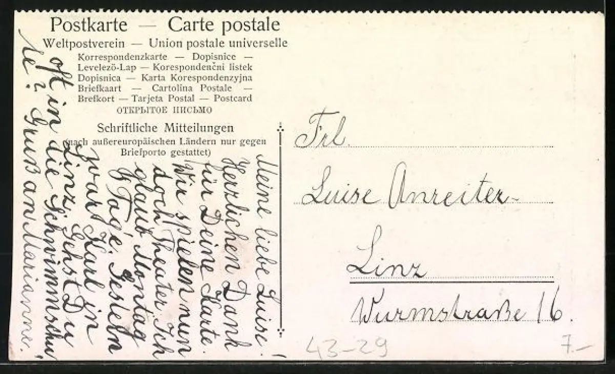 alte Ansichtskarte, ungelaufen, beschnitten re.