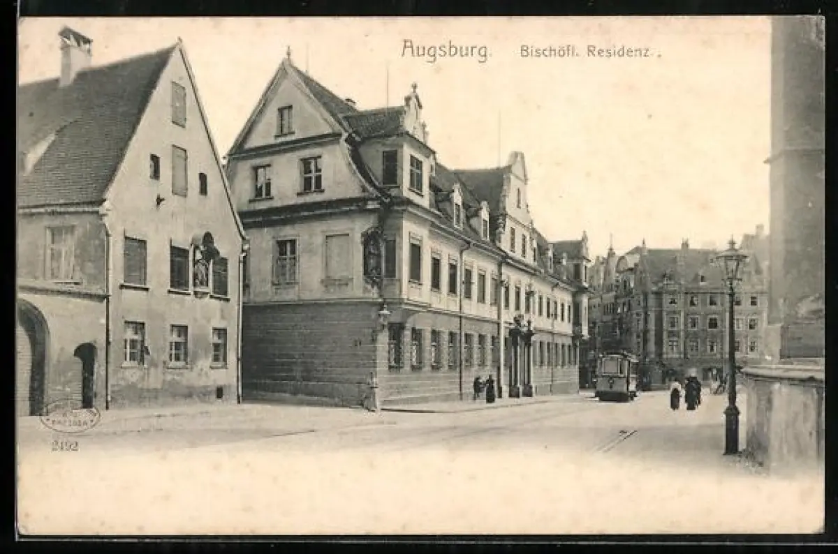 AK Augsburg, Bischöfliche Residenz mit Strassenbahn