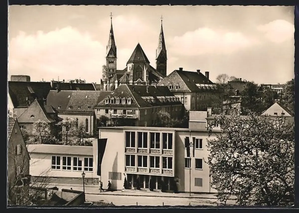 AK Augsburg, Jugendherberge, Stadtansicht mit Kirche