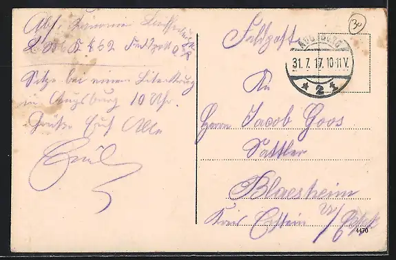alte Ansichtskarte, gelaufen 1917, guter Zustand
