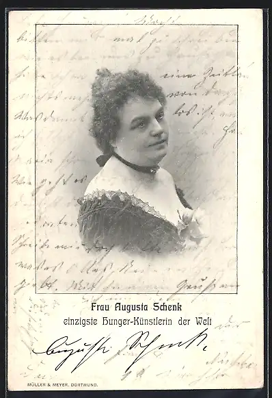 AK Augusta Schenk, einzigste Hunger-Künstlerin der Welt