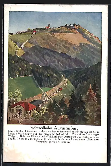 AK Augustusburg, Ansicht der Drahtseilbahn