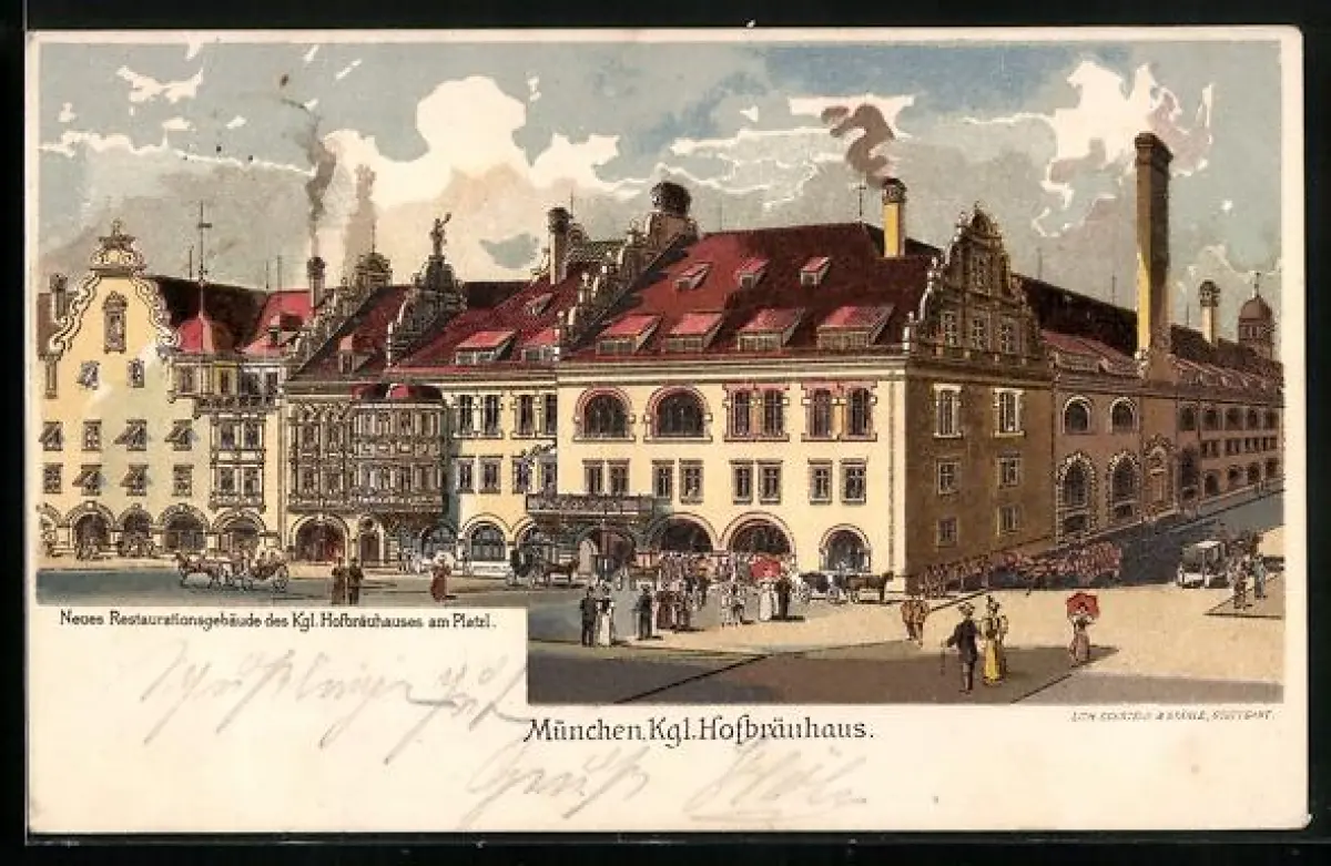 AK Aussenansicht vom Münchner Hofbräuhaus, neues Restaurationsgebäude am Platzl