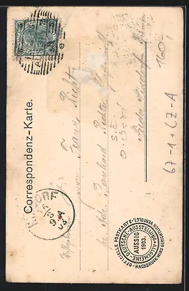 alte Ansichtskarte, gelaufen 1903, Eckknicke re., rückseitig Klebe- und Papierreste, guter Zustand