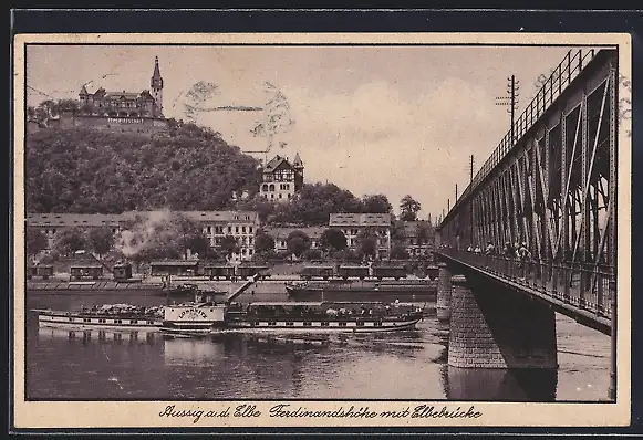 AK Aussig a. d. Elbe, Ferdinandshöhe mit Elbebrücke