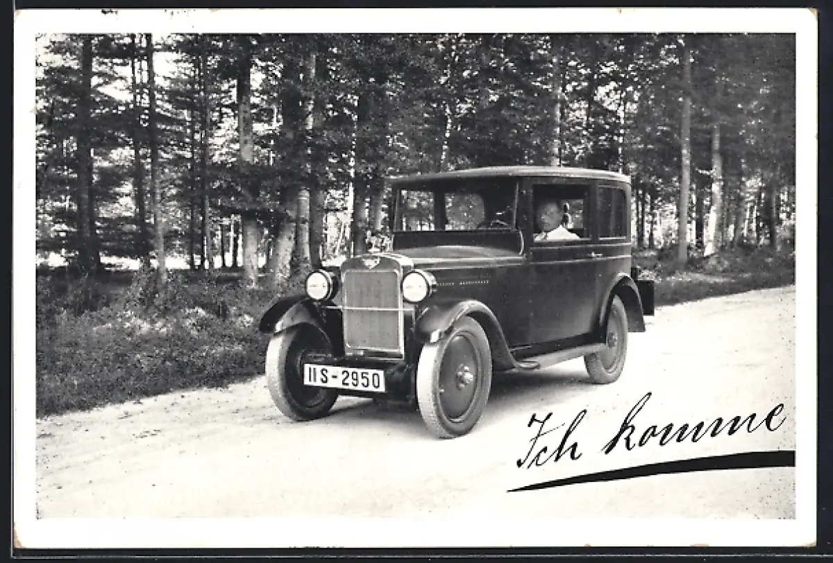 AK Auto Hanomag 3 /16 PS, Reklame für Textilversand August Schmidt