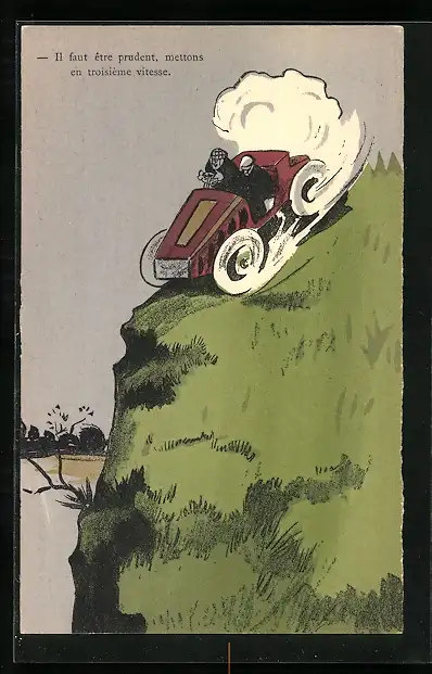 AK Auto rast auf einen Abgrund zu