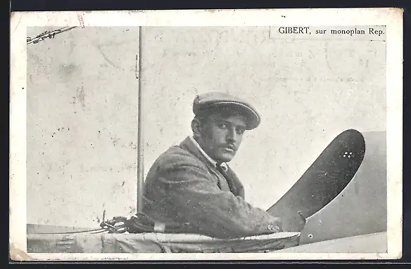 AK Aviateur Gibert sur monoplan Rep., Pilot Gibert im Flugzeug