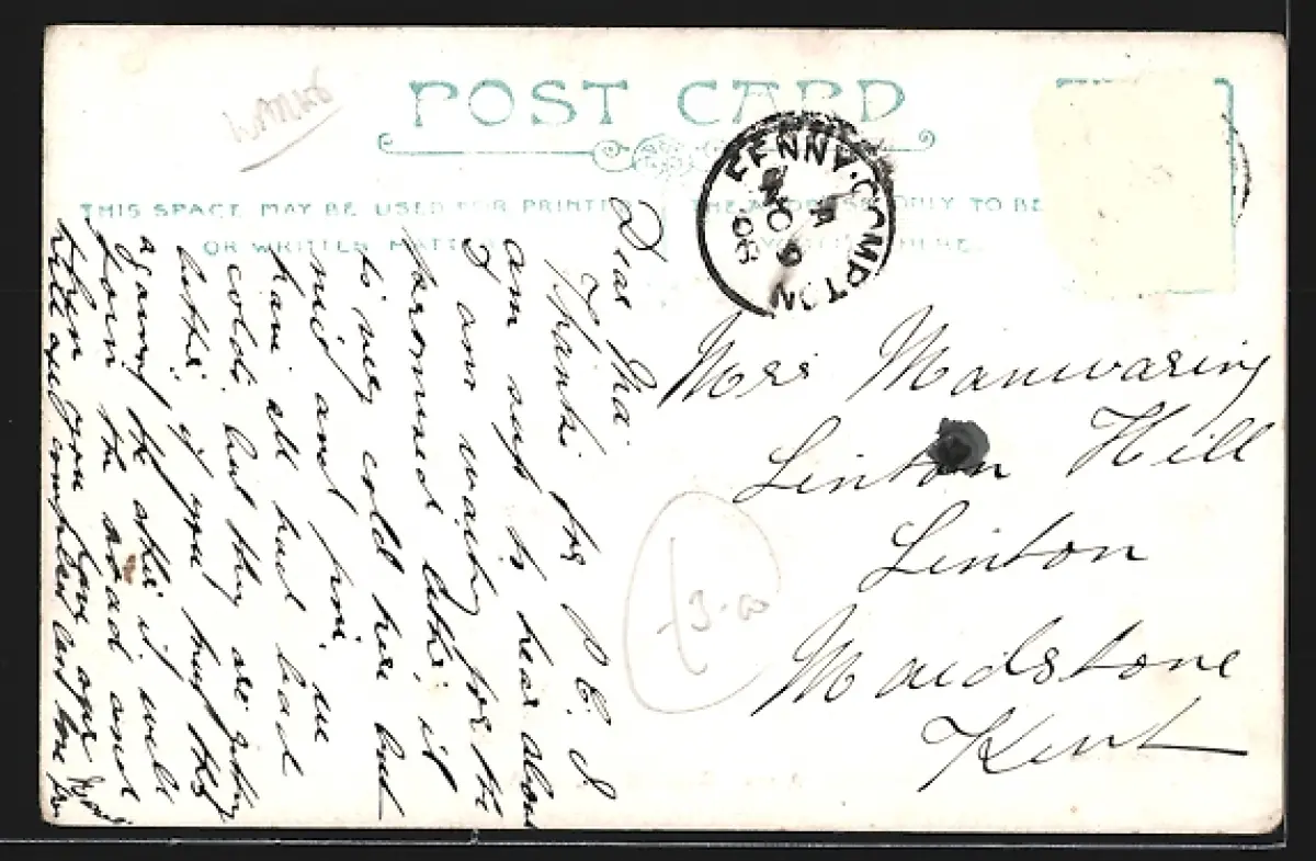 alte Ansichtskarte, gelaufen, Briefmarke entfernt, rückseitig Oberflächenschaden, Eckknick links oben, sonst guter Zustand