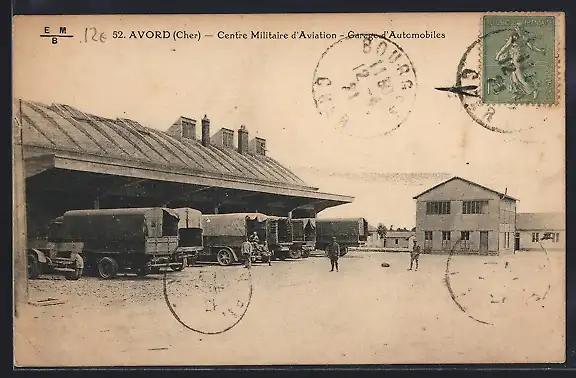 AK Avord /Cher, Centre Militaire d`Aviation, Garage d`Automobiles, Flughafen