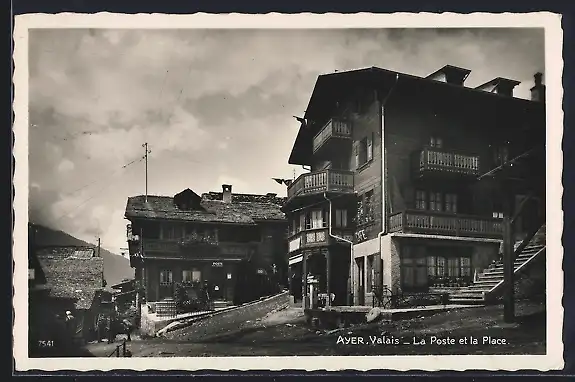 AK Ayer /Valais, La Poste et la Place
