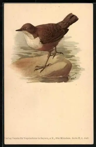 AK Bachamsel auf einem Stein, Verein für Vogelschutz in Bayern