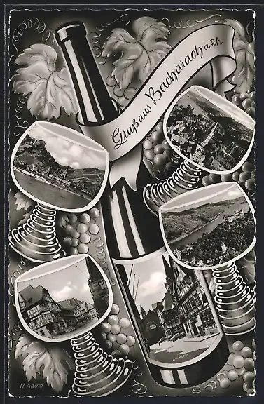 AK Bacharach a. Rh., Burg Stahleck, Markt, Ortsansicht, Wein-Passepartout