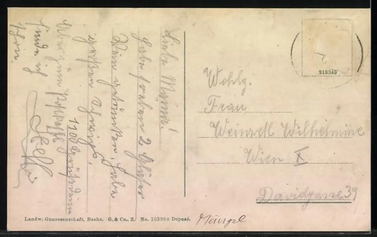 alte Ansichtskarte, gelaufen, Briefmarke entfernt, Bugspuren li. oben und re. unten, guter Zustand