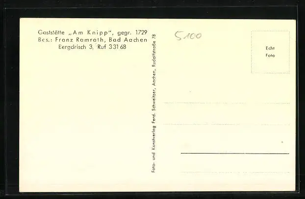 AK Bad Aachen, Gaststätte Am Knipp F. Ramrath, Bergdrisch 3, Innenansicht Speiseraum