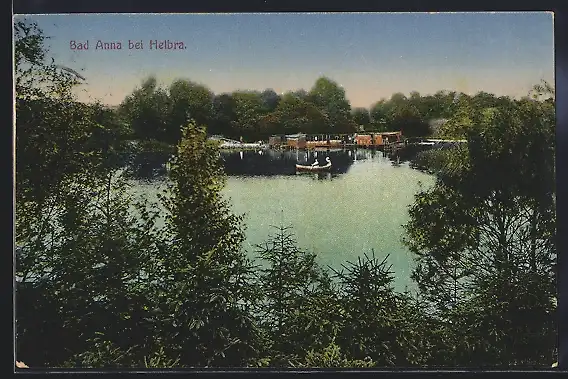 AK Bad Anna bei Helbra, Ruderboot auf dem See