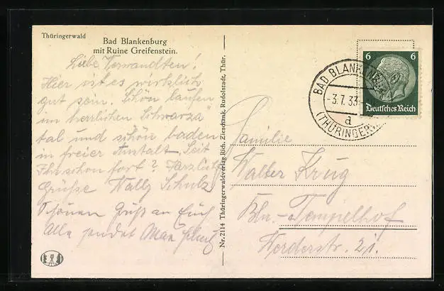 alte Ansichtskarte, gelaufen 1933, guter Zustand