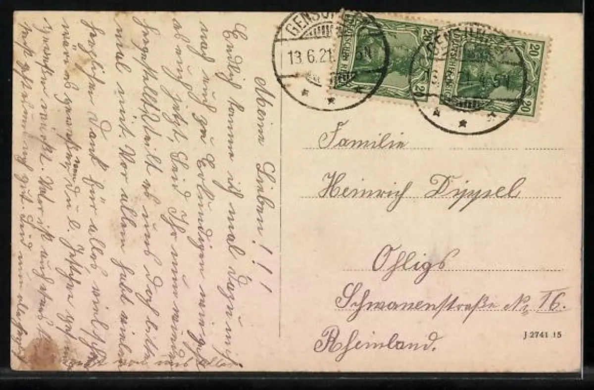alte Ansichtskarte, gelaufen 1921, guter Zustand