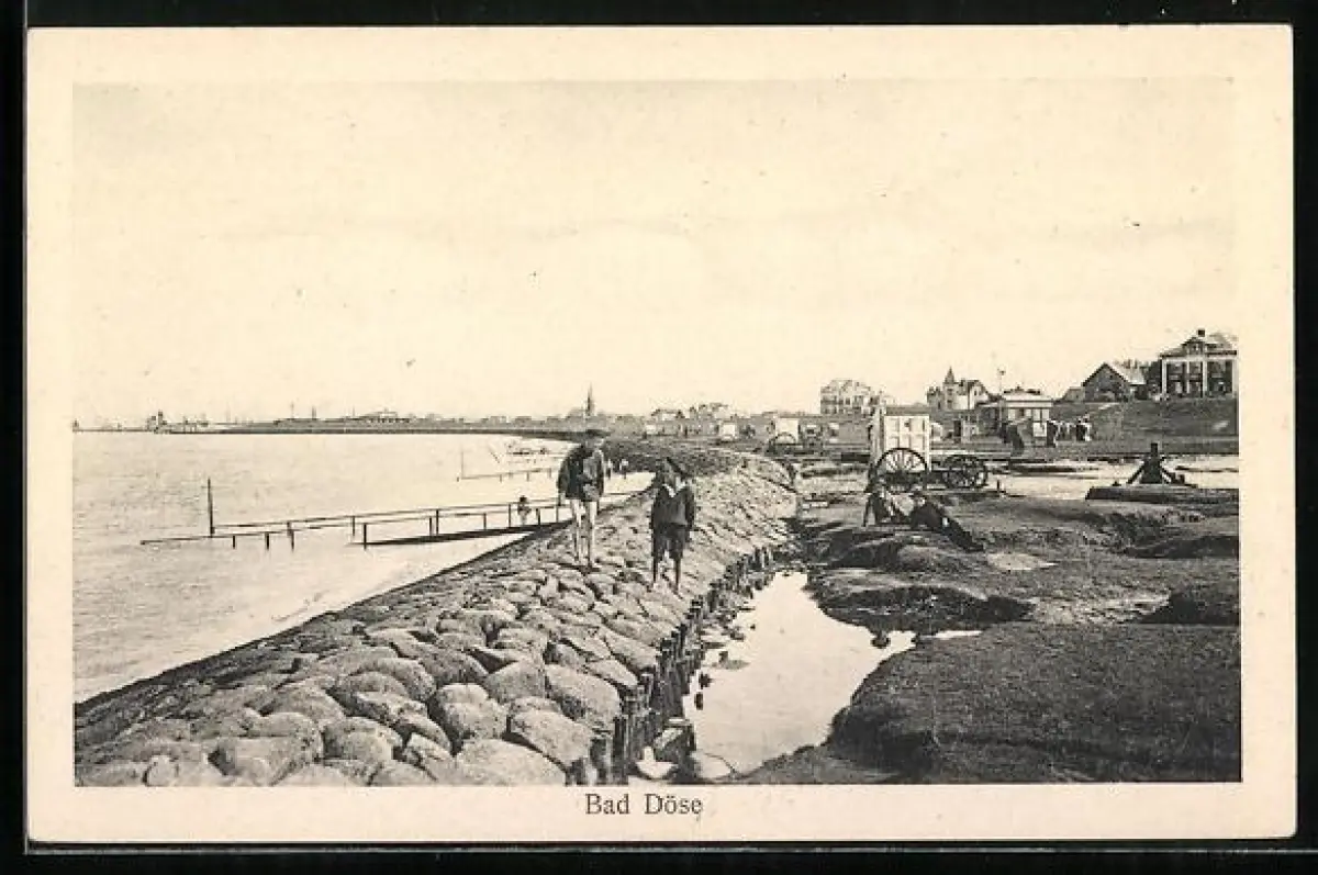 AK Bad Döse, Deich und Ortsansicht