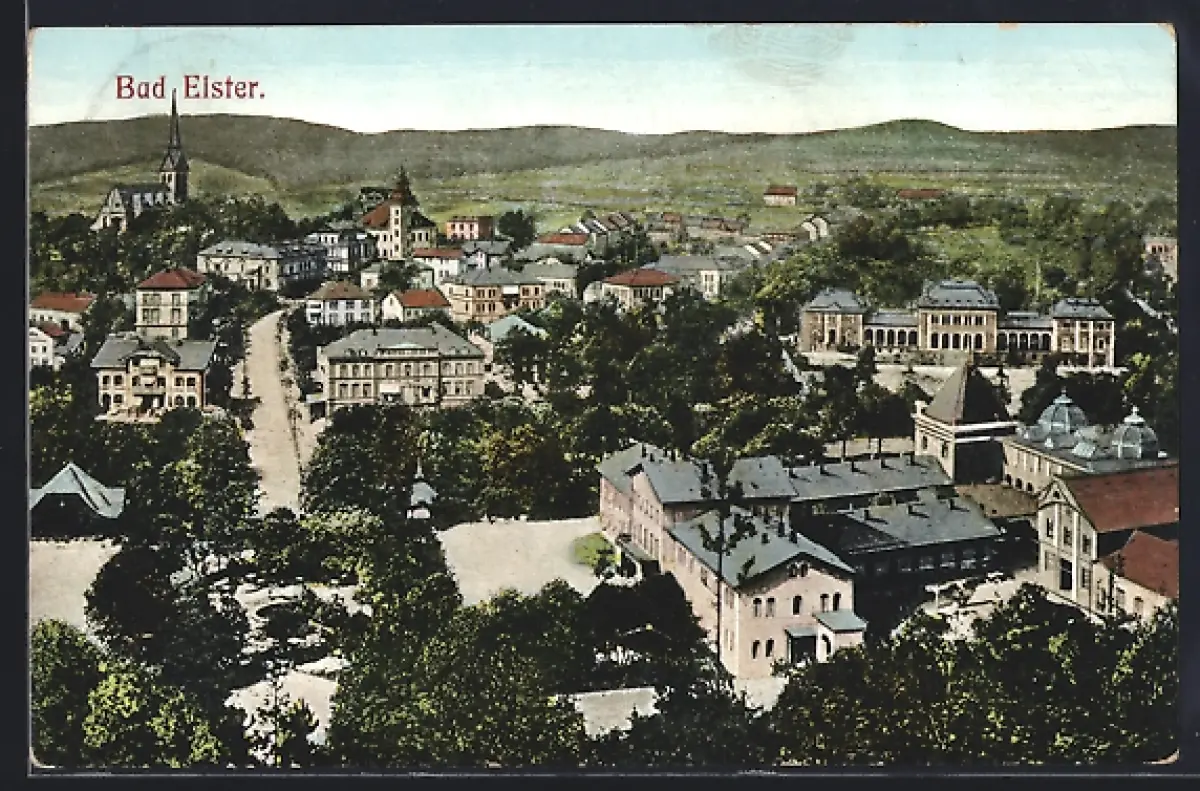 AK Bad Elster, Stadtansicht mit Kurgebäuden und Kirche