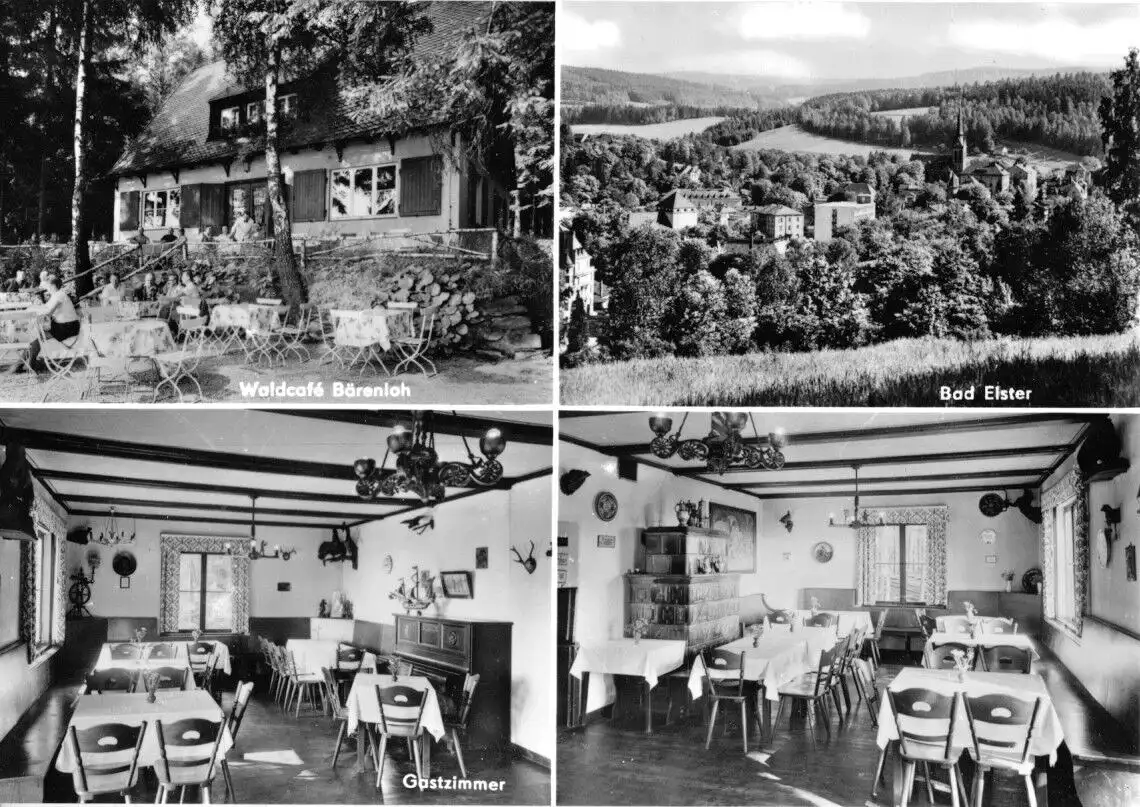 Ansichtskarte Bad Elster Waldcafé Bärenloh, vier Abb. Erhaltung I ungelaufen Druckvermerk: 1976 Herstellungsland: DDR Verlag: VEB-Foto-Verlag, 9934 Erlbach i. V. - 07 14 13 342