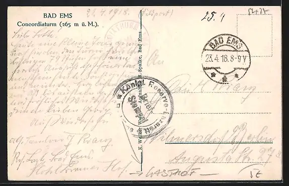 AK Bad Ems, Concordiaturm mit Café-Terrasse