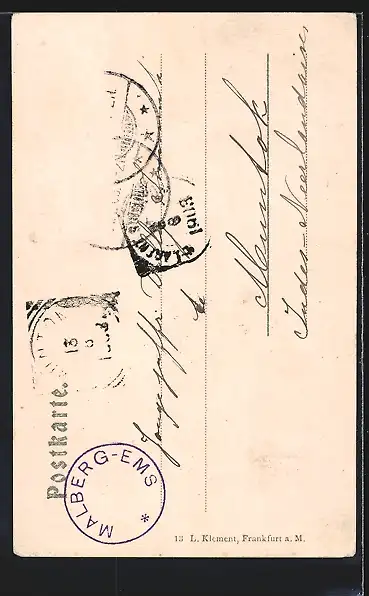alte Ansichtskarte, gelaufen 1903, Briefmarke entfernt, rückseitig Oberflächenschaden, Eckknick re. oben, guter Zustand