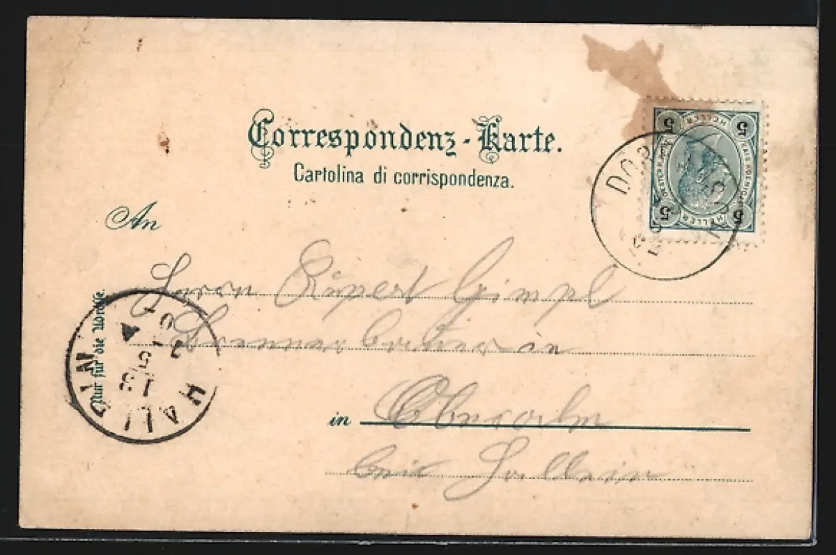 alte Ansichtskarte, gelaufen 1902, Eckknick re. oben, guter Zustand