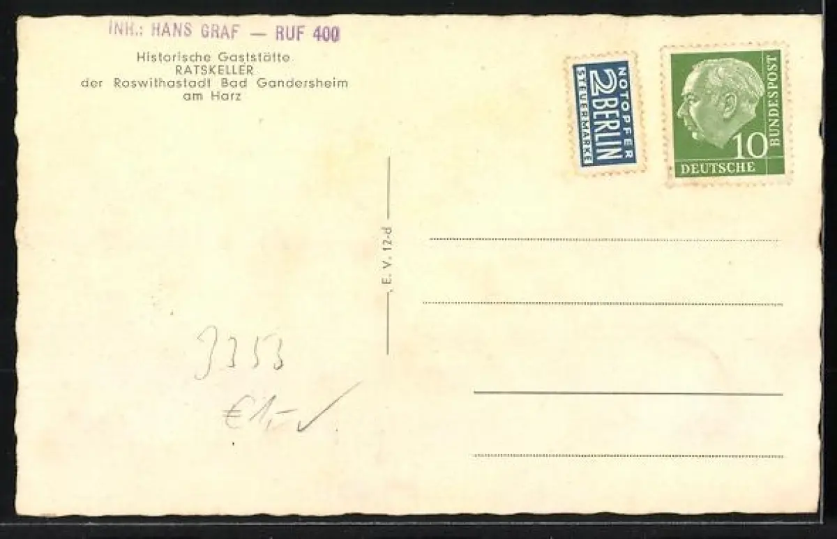 AK Bad Gandersheim am Harz, Gasthaus Ratskeller, Inh. Hans Graf