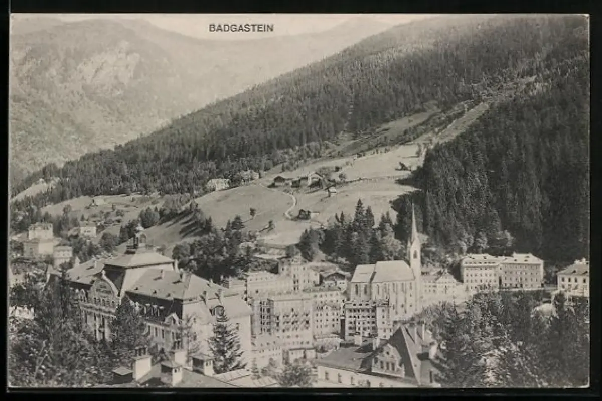 AK Bad Gastein, Ortsansicht aus der Vogelschau