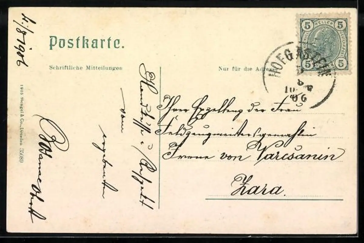 alte Ansichtskarte, gelaufen 1906, Stempelspur, guter Zustand