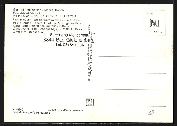 AK Bad Gleichenberg, Gasthof-Pension Goldener Hirsch F. u. M. Monschein