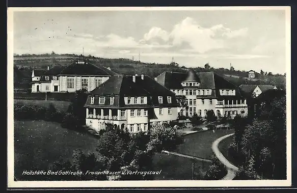 AK Bad Gottleuba, Frauenhäuser und Vortragssaal der Heilstätte