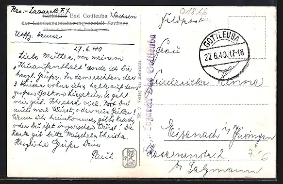 alte Ansichtskarte, gelaufen 1940, guter Zustand