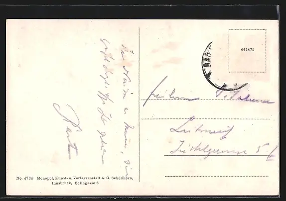 alte Ansichtskarte, gelaufen, Briefmarke entfernt, guter Zustand