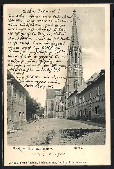 AK Bad Hall i. Ob.-Oesterr., Kirche mit Strassenpartie