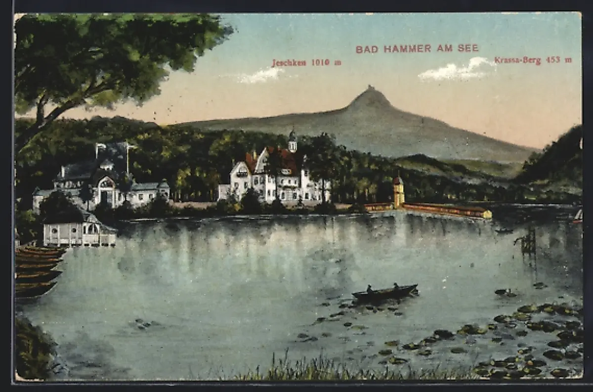 AK Bad Hammer am See, Ansicht vom See mit Fernblick auf den Jeschken