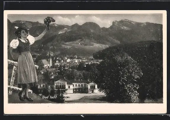AK Bad Ischl, Gesamtansicht, Frau mit Blumenstrauss