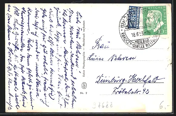 alte Ansichtskarte, gelaufen 1953, guter Zustand