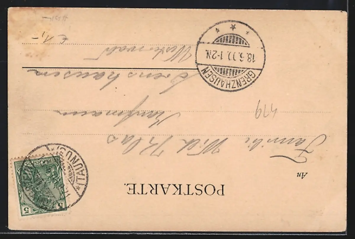 alte Ansichtskarte, gelaufen 1900, Stempelspur, guter Zustand