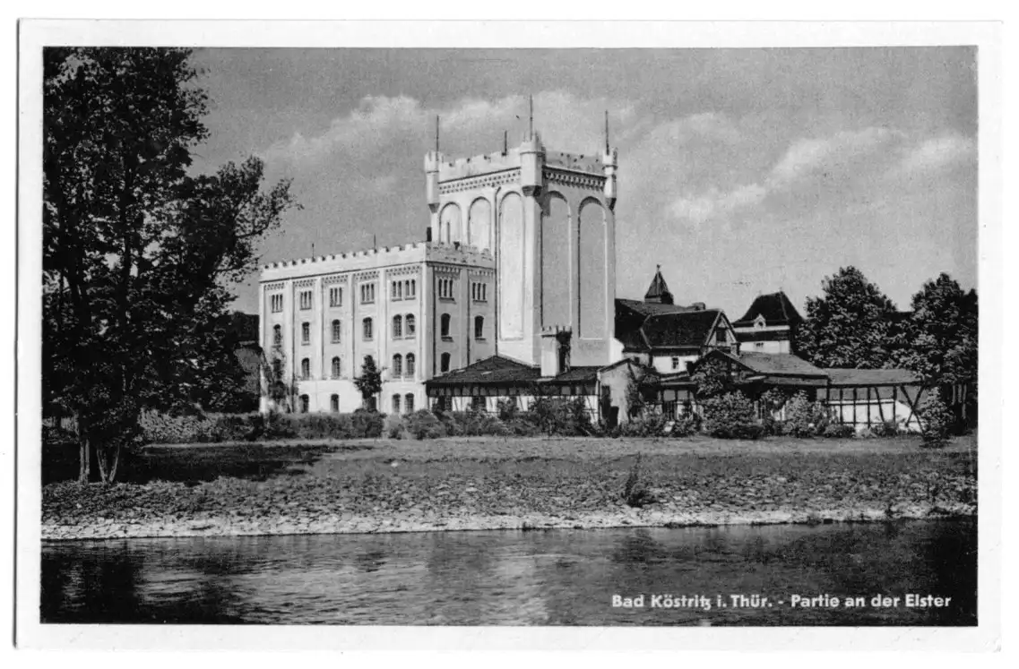 Ansichtskarte Bad Köstritz Thür. Teilansicht über die Elster Erhaltung I-II postalisch gelaufen, gestempelt: Bad Köstritz, 13.1.58 Druckvermerk: 1956 Herstellungsland: DDR Verlag: Werner Wicke, Leipzig C 1