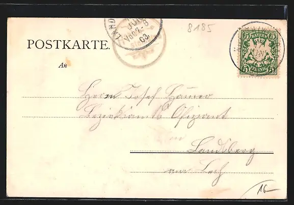 gelaufen 1903, Eckknick rechts oben, guter Zustand