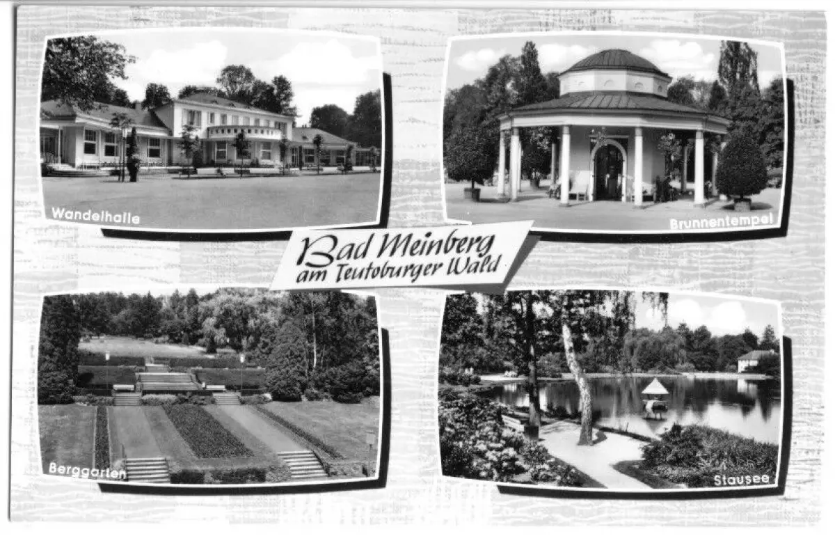 Ansichtskarte Bad Meinberg am Teuteburger Wald vier Abb. - Wandelhalle, Brunnentempel, Berggarten, Stausee Erhaltung I-II postalisch gelaufen, gestempelt: Bad Meinberg, 29.8.68 Verlag: Schöning & Co., Lübeck