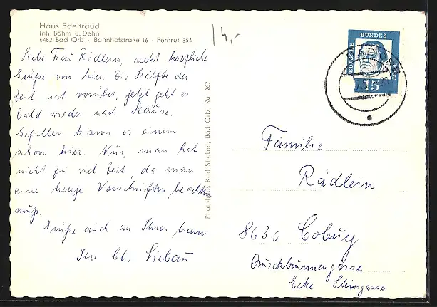 AK Bad Orb, Gasthof Haus Edeltraud, Innen- und Aussenansichten, Bahnhofstrasse 16