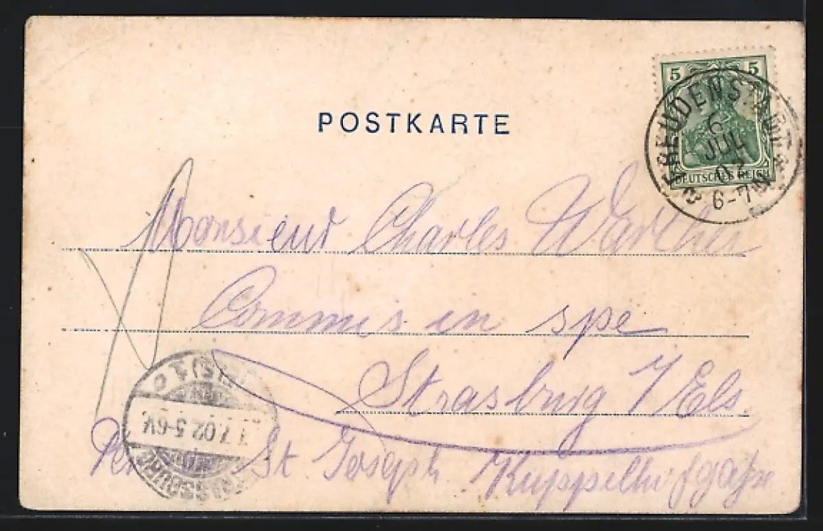 gelaufen 1902, Eckknicke li. oben u. re., guter Zustand