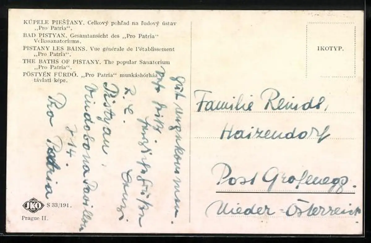 AK Bad Pistyan, Gesamtansicht des Pro Patria Volkssanatoriums