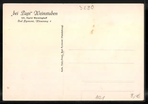 AK Bad Pyrmont, Gasthaus - Weinstube Bei Papi, Innenansicht, Wiesenweg 9