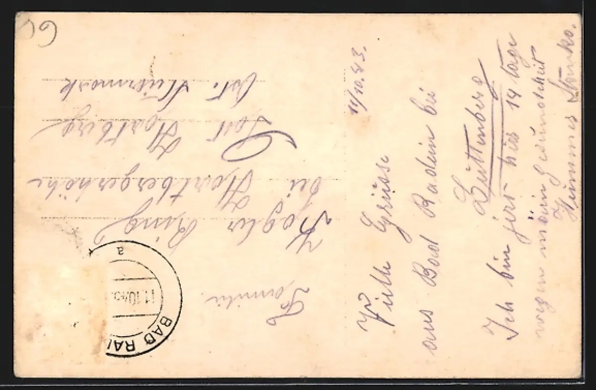 alte Ansichtskarte, gelaufen, Briefmarke entfernt, guter Zustand